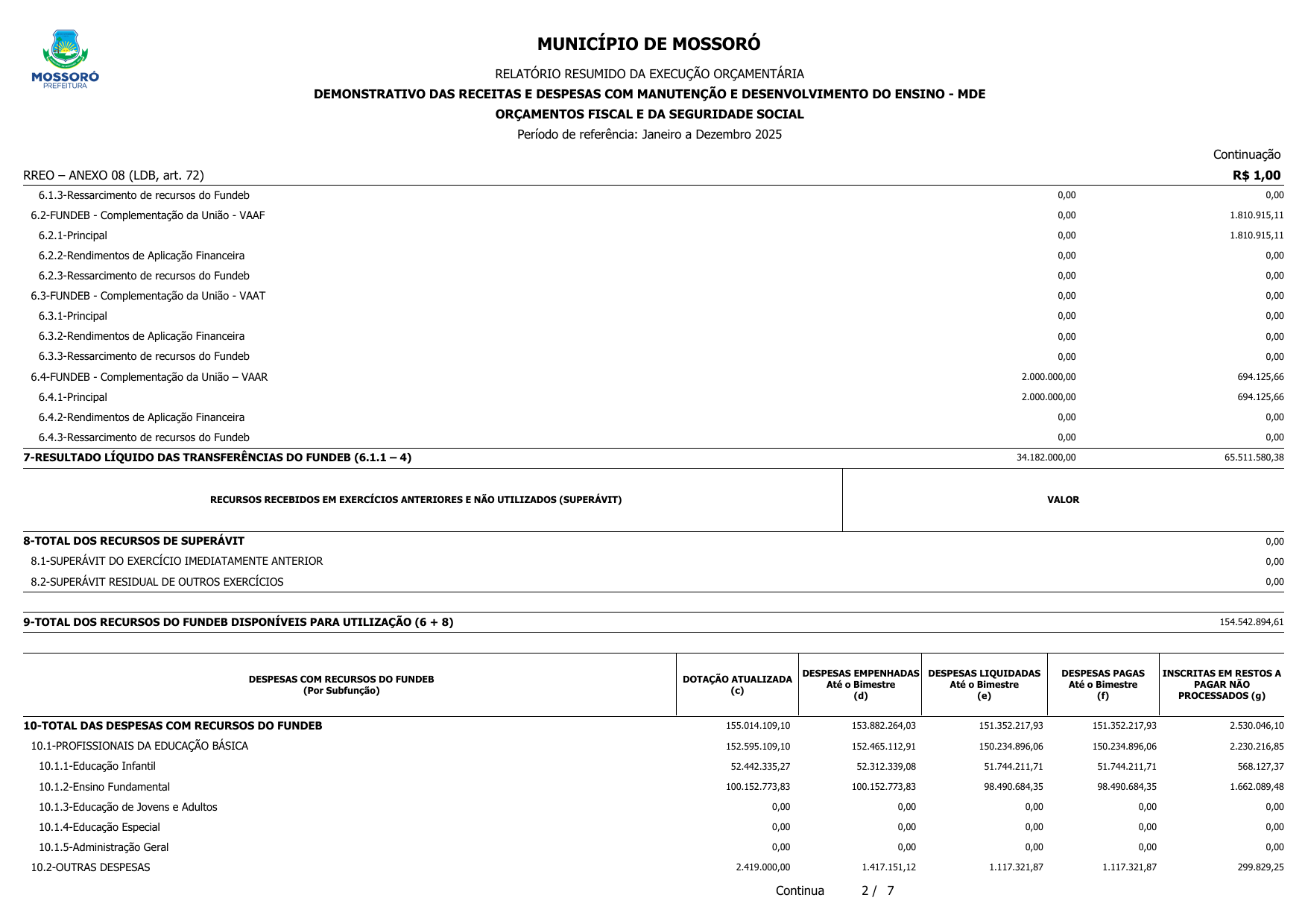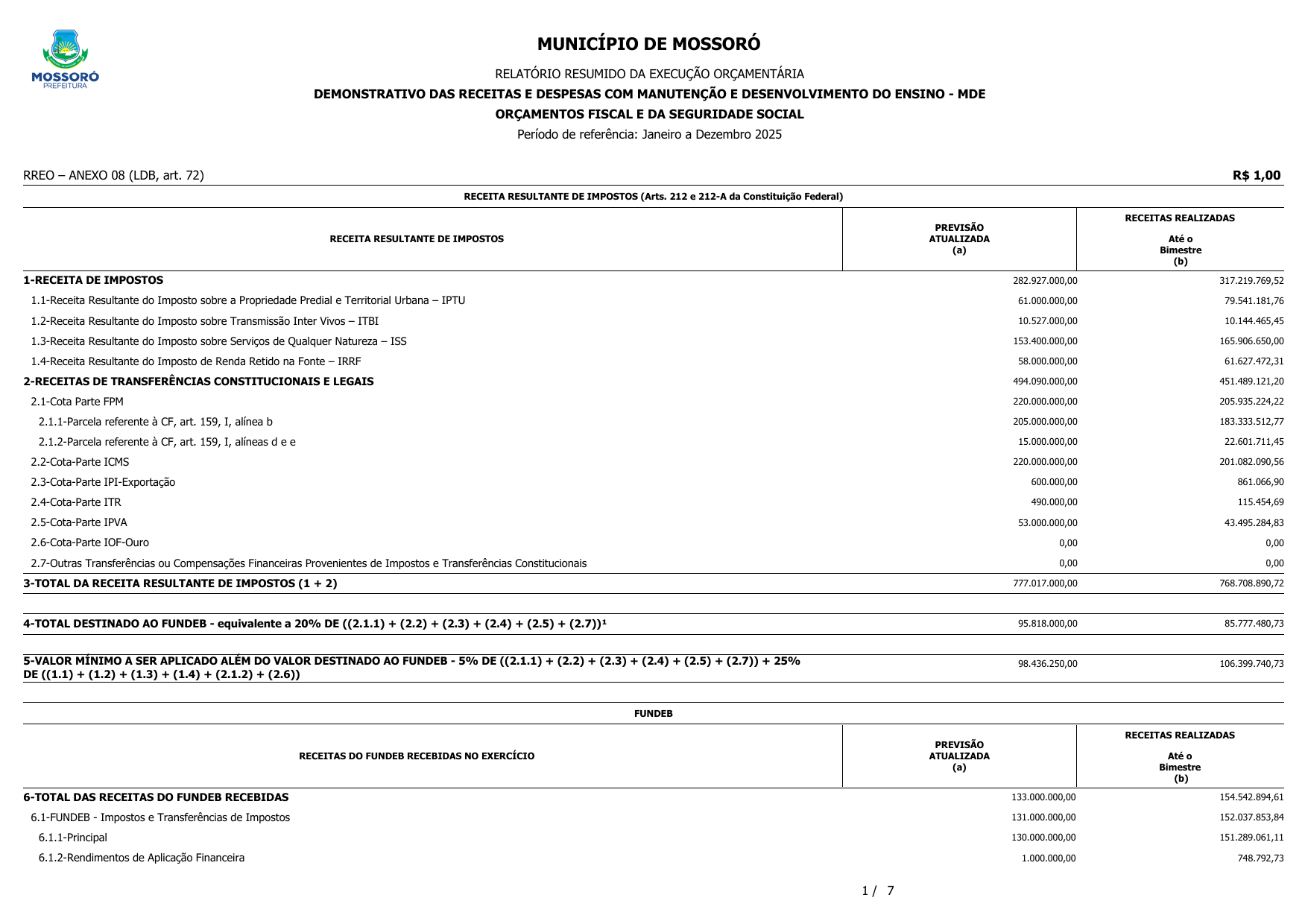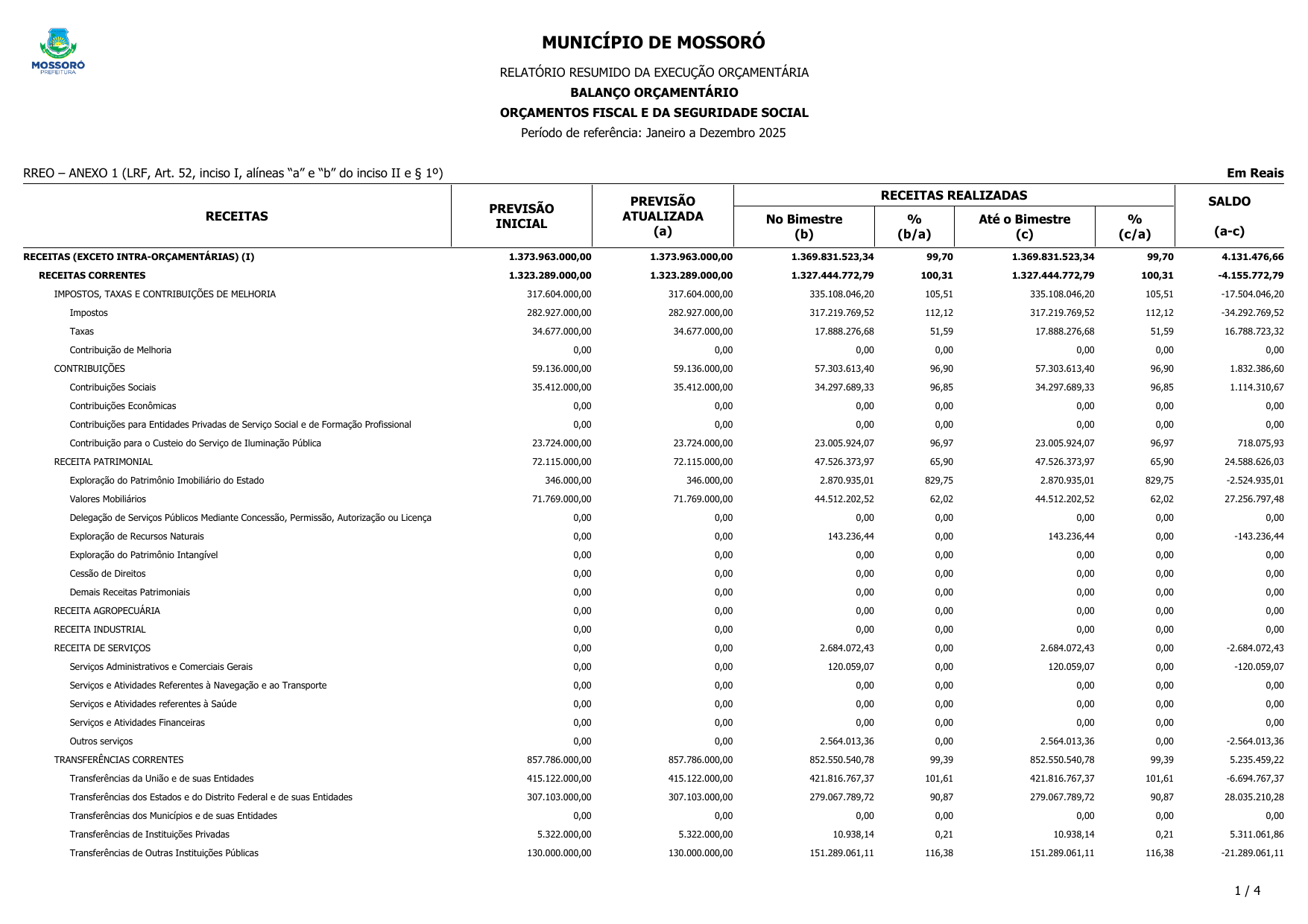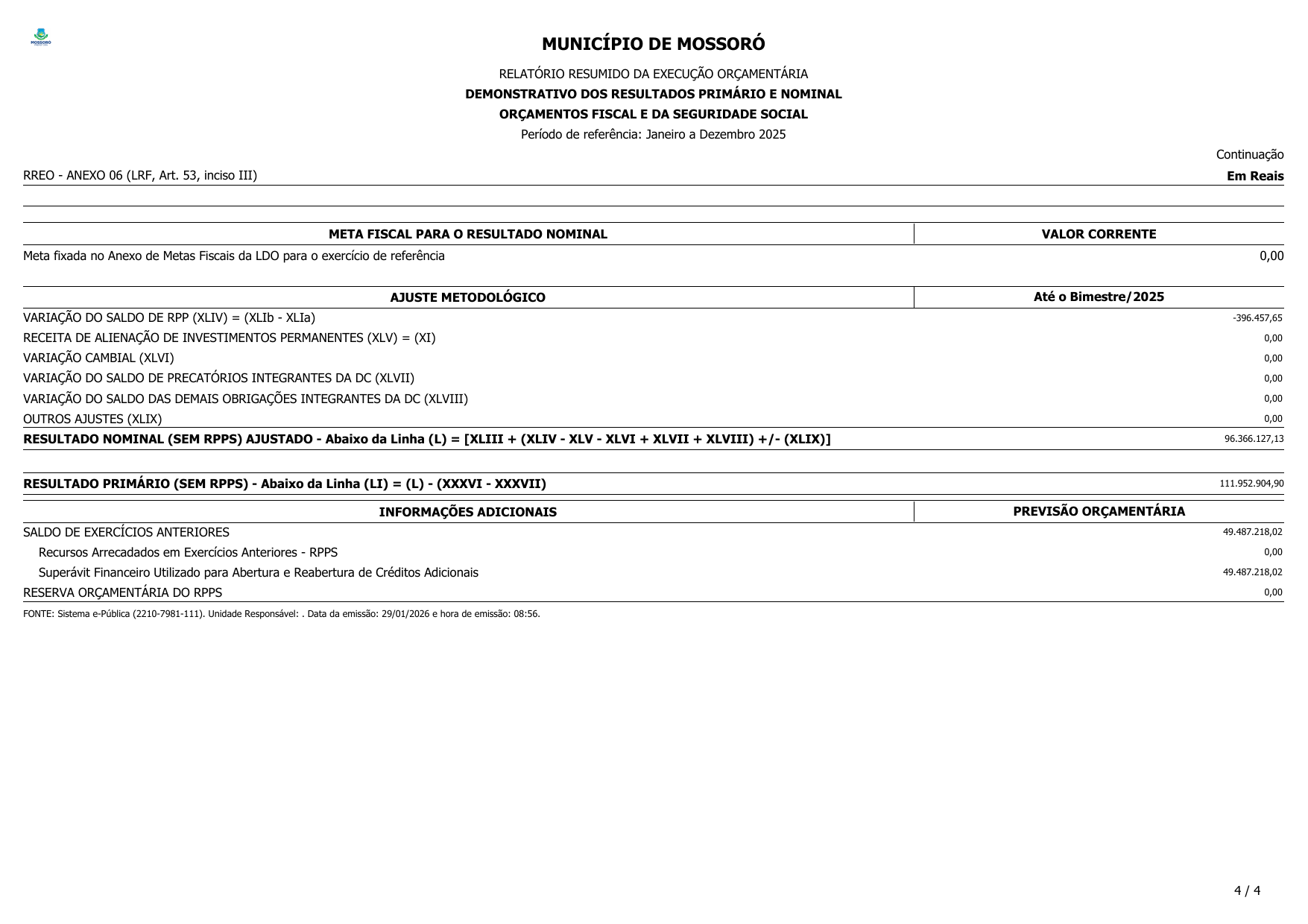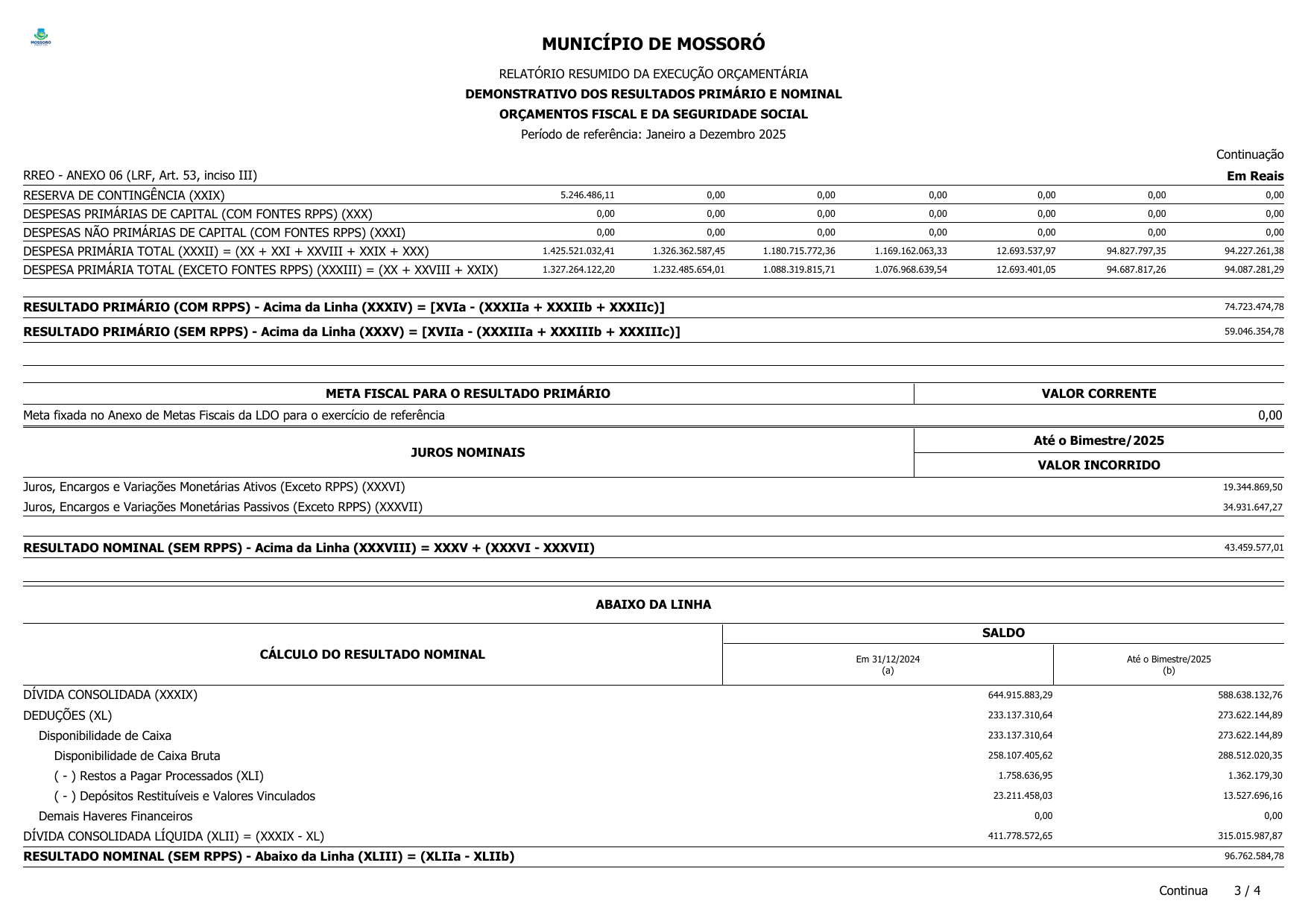 Art. 1º Publicar o Relatório Resumido da Execução Orçamentária – RREO, referente ao 6º bimestre do ano de 2025.