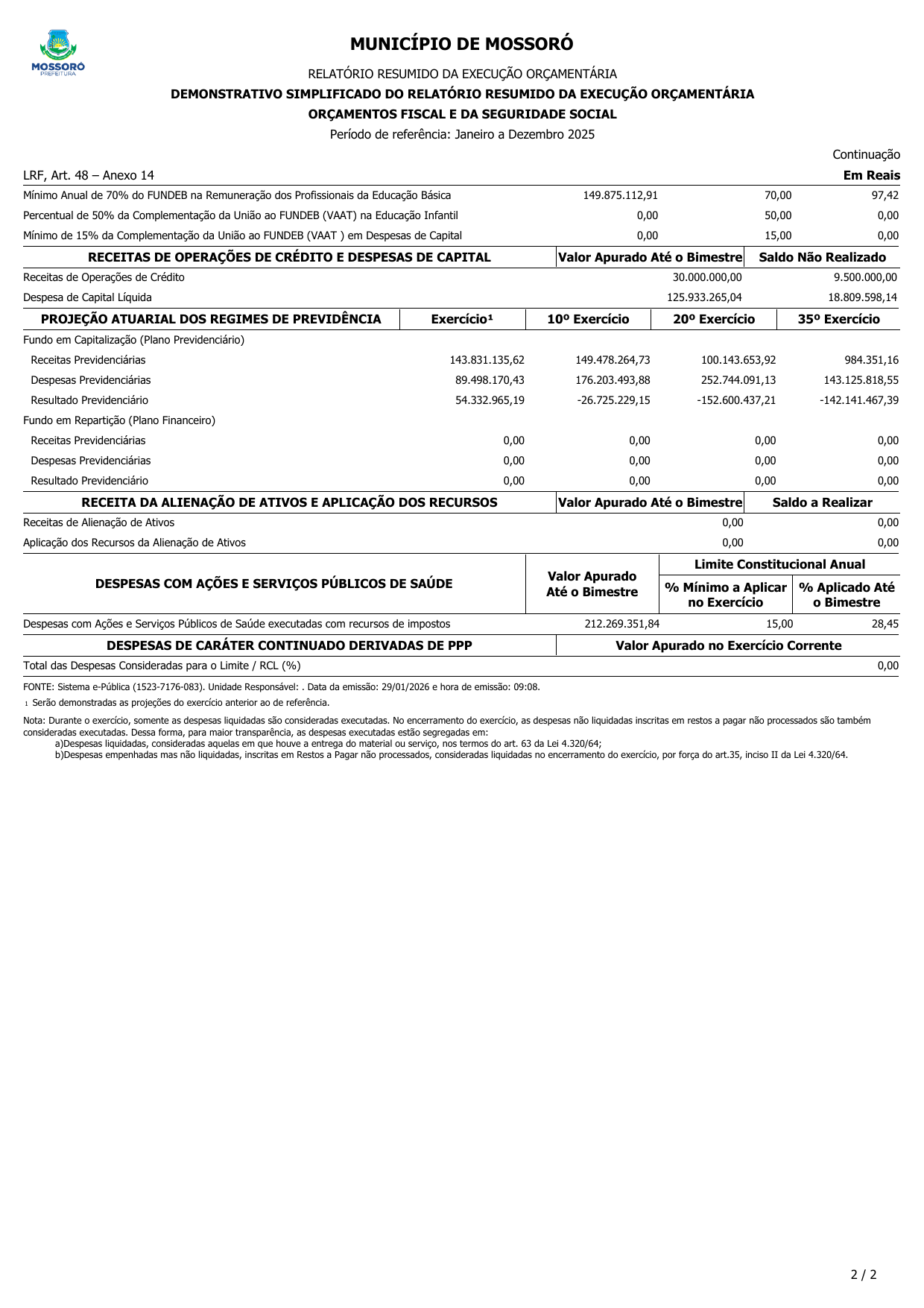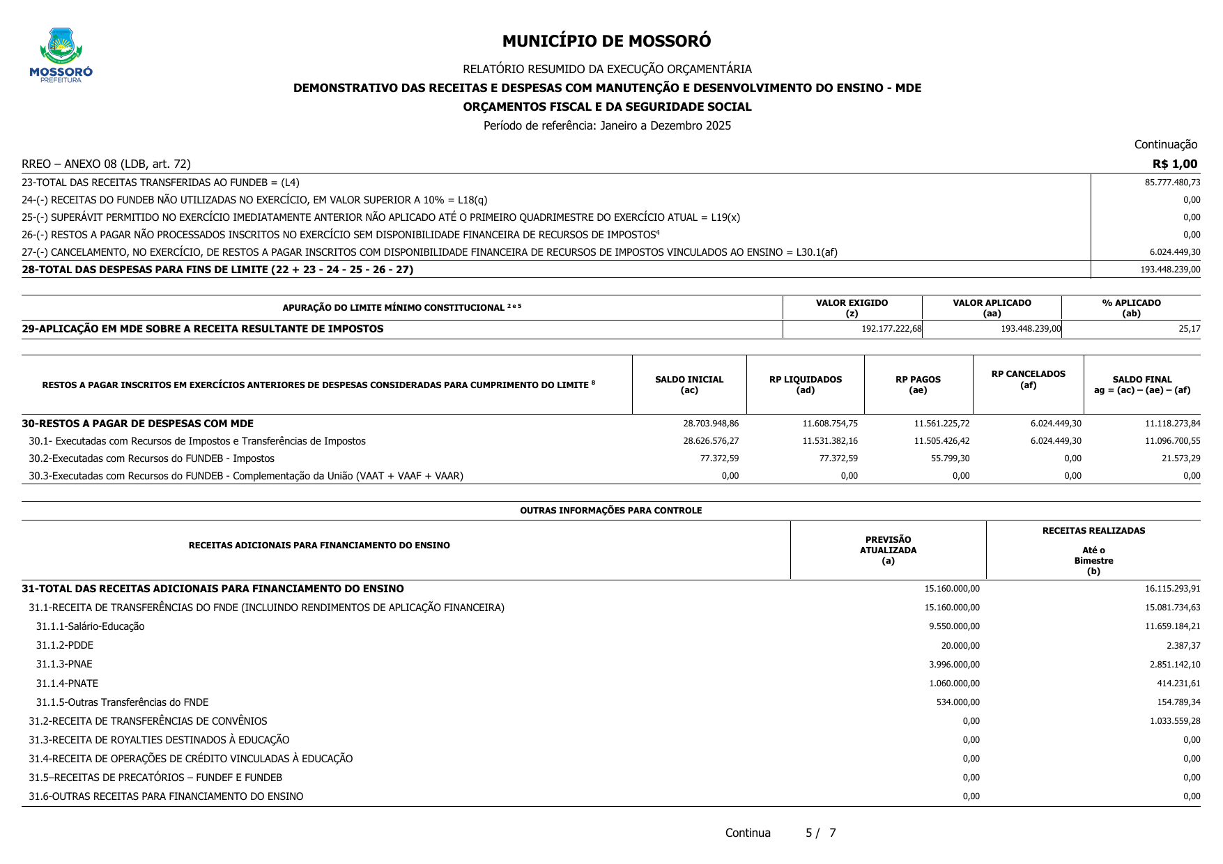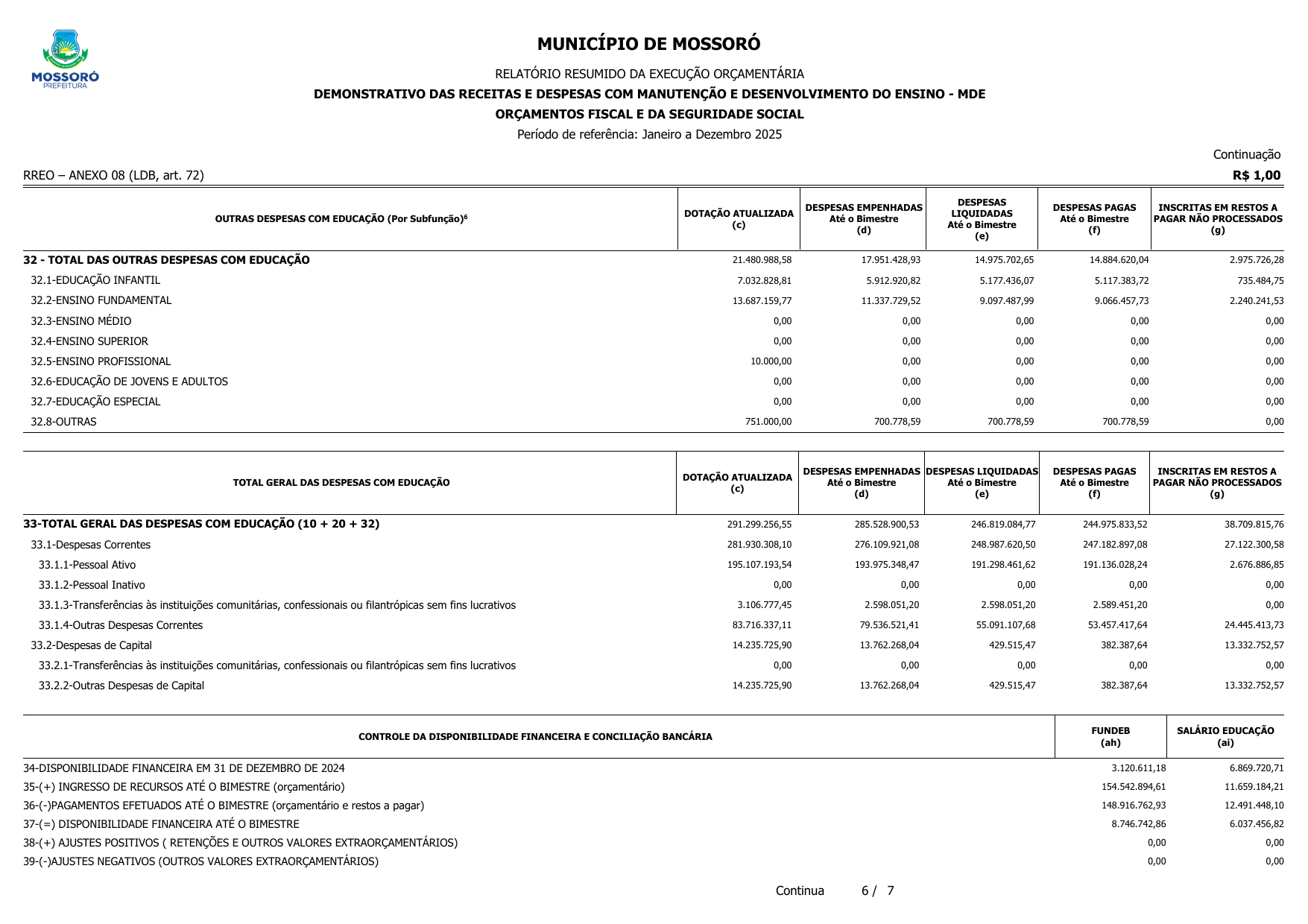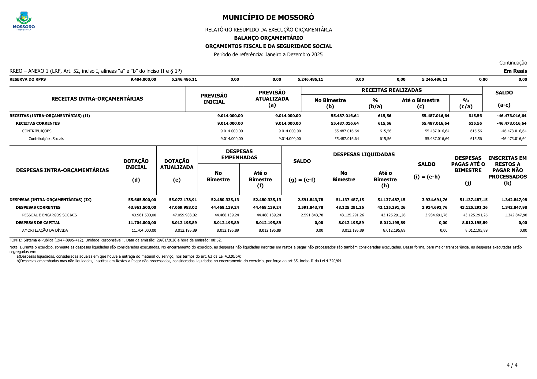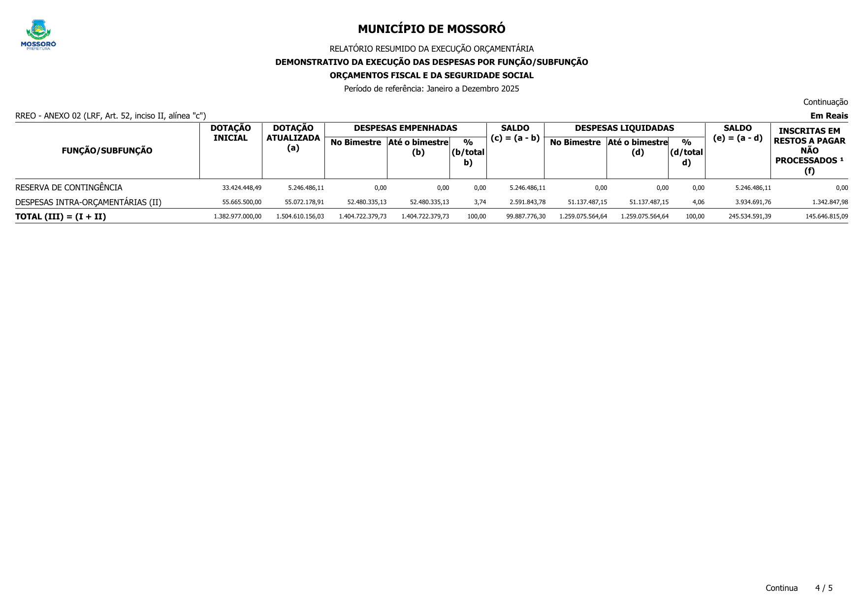 Art. 1º Publicar o Relatório Resumido da Execução Orçamentária – RREO, referente ao 6º bimestre do ano de 2025.