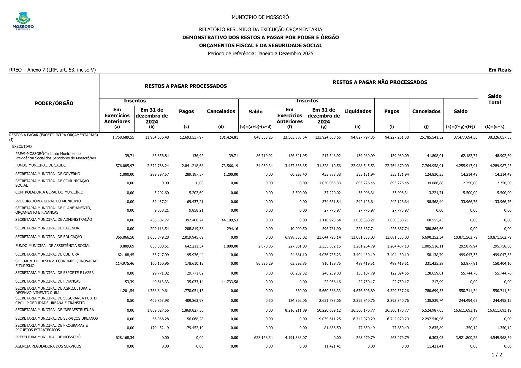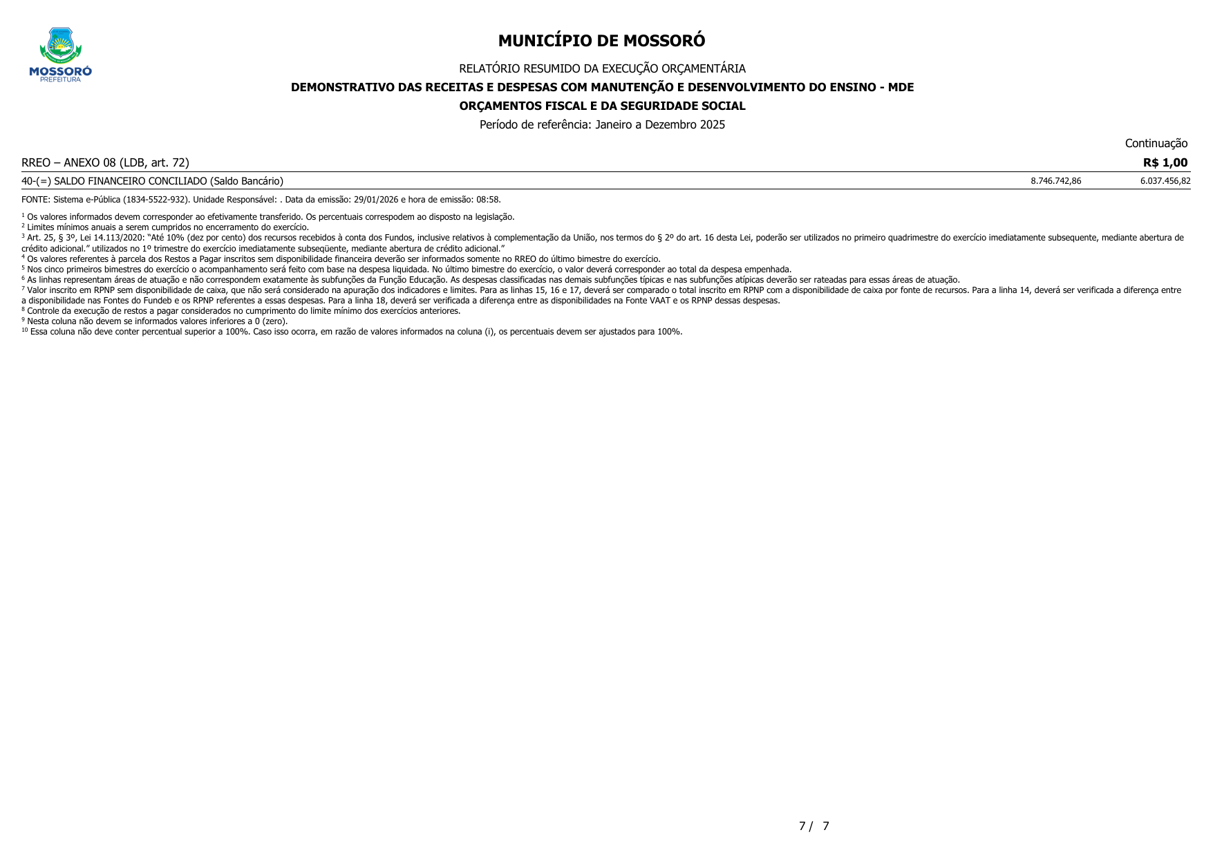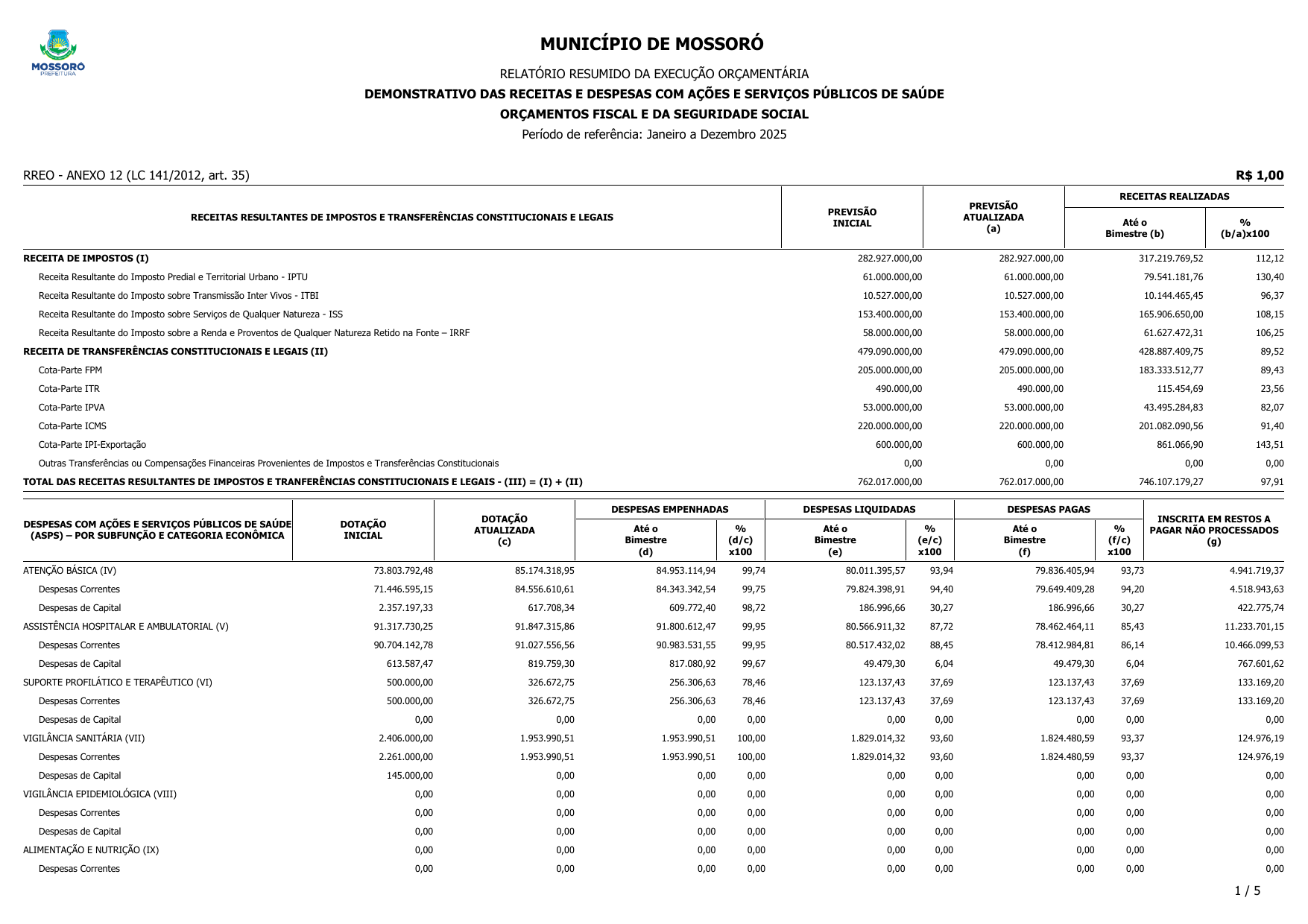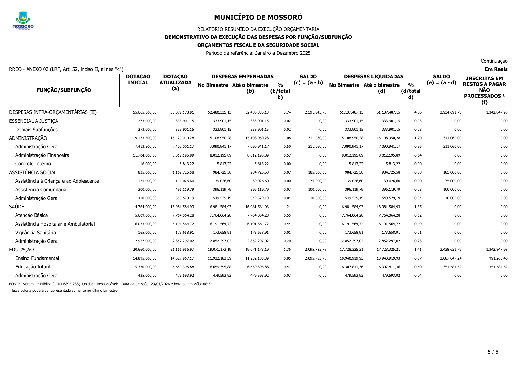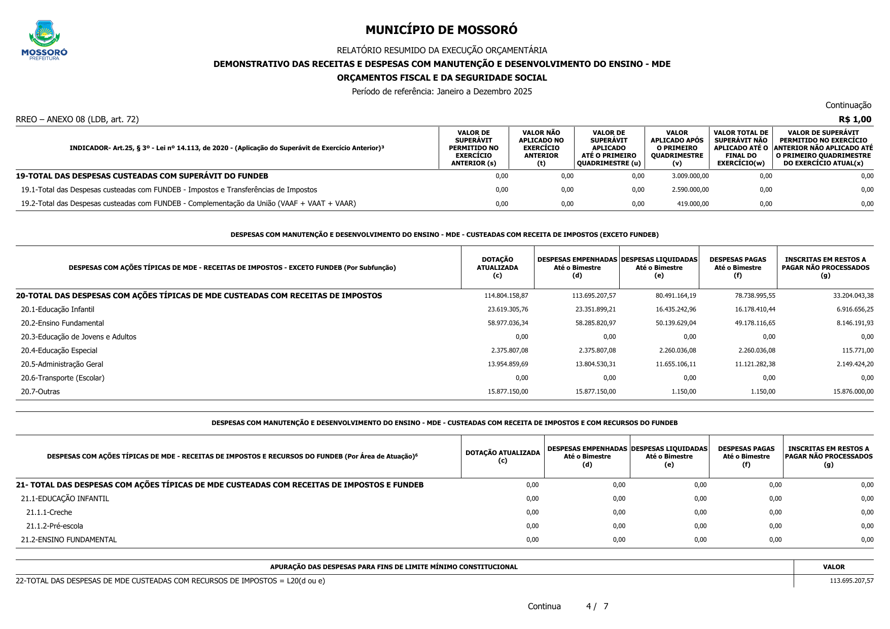 Art. 1º Publicar o Relatório Resumido da Execução Orçamentária – RREO, referente ao 6º bimestre do ano de 2025.
