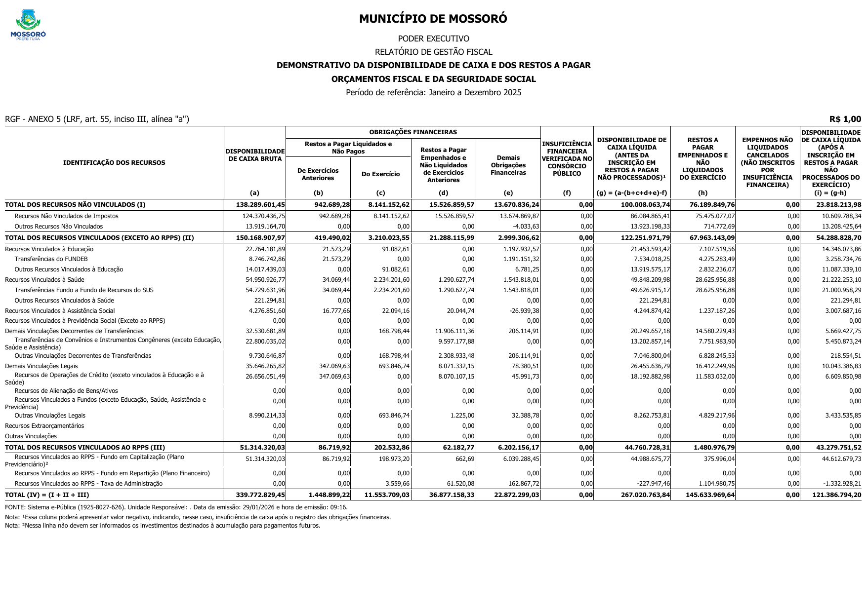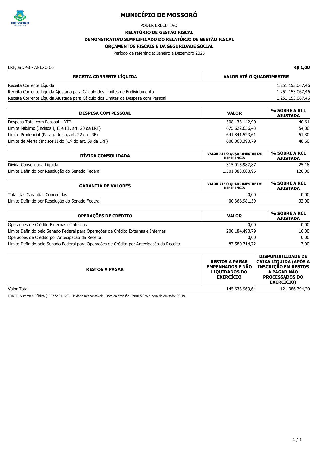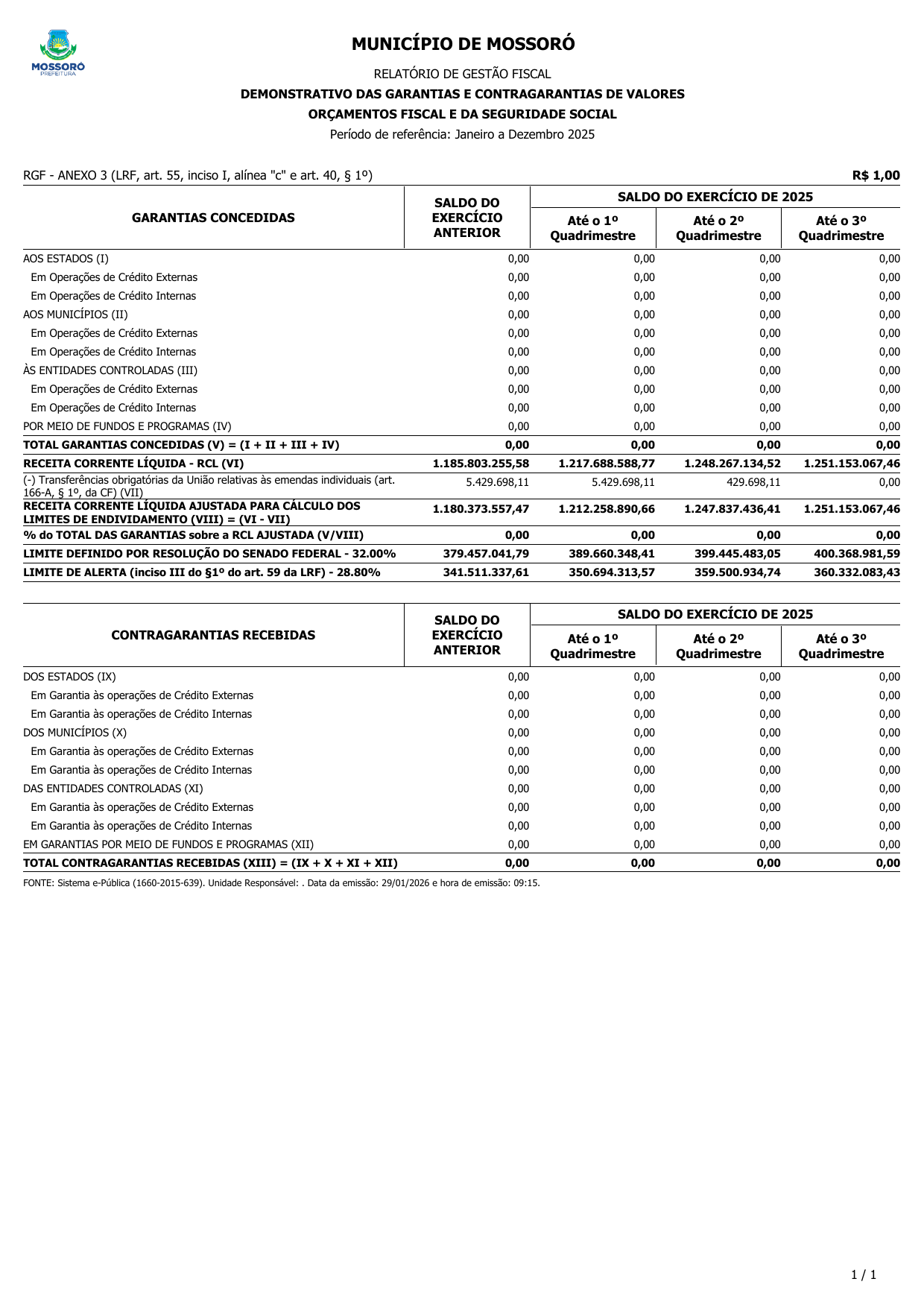 Art. 1º Publicar o Relatório de Gestão Fiscal – RGF, referente ao 3º quadrimestre do ano de 2025.