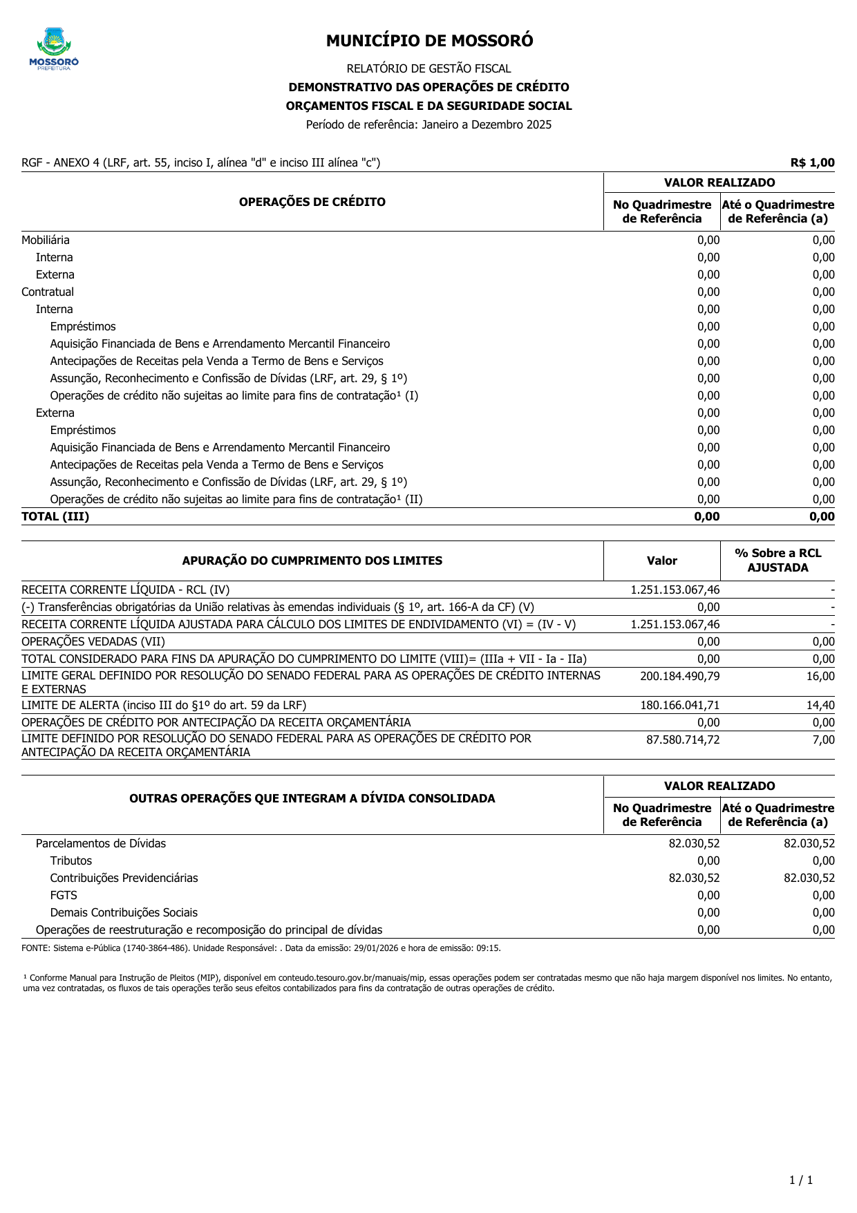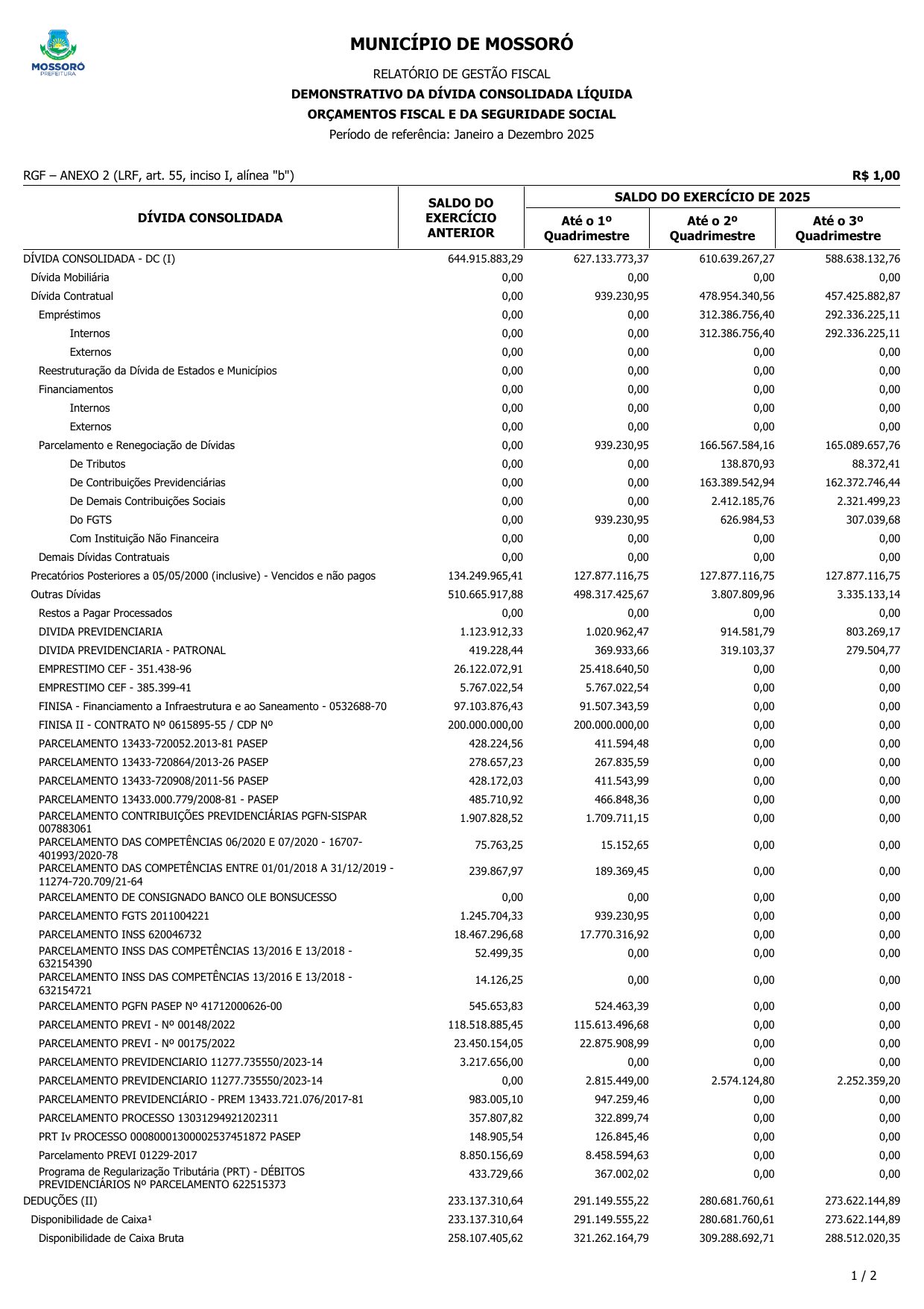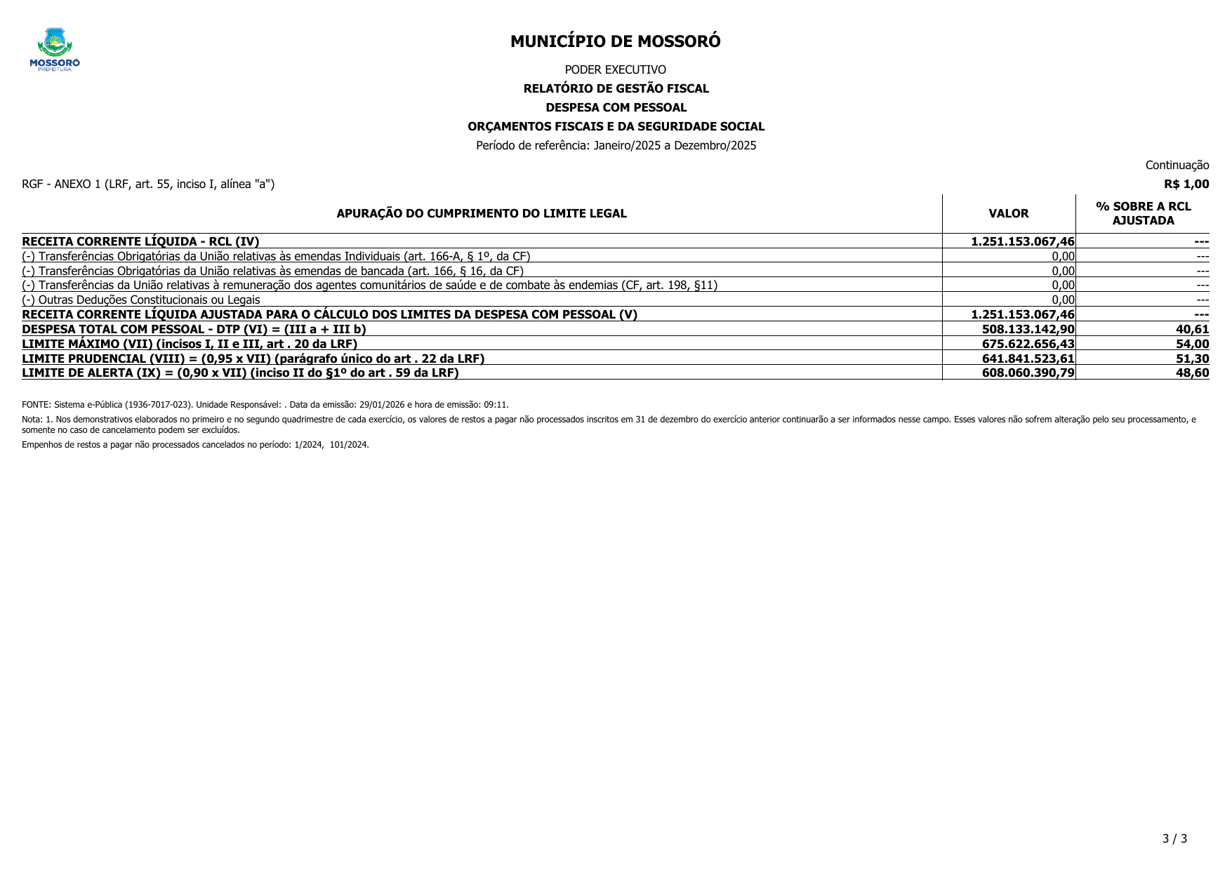 Art. 1º Publicar o Relatório de Gestão Fiscal – RGF, referente ao 3º quadrimestre do ano de 2025.
