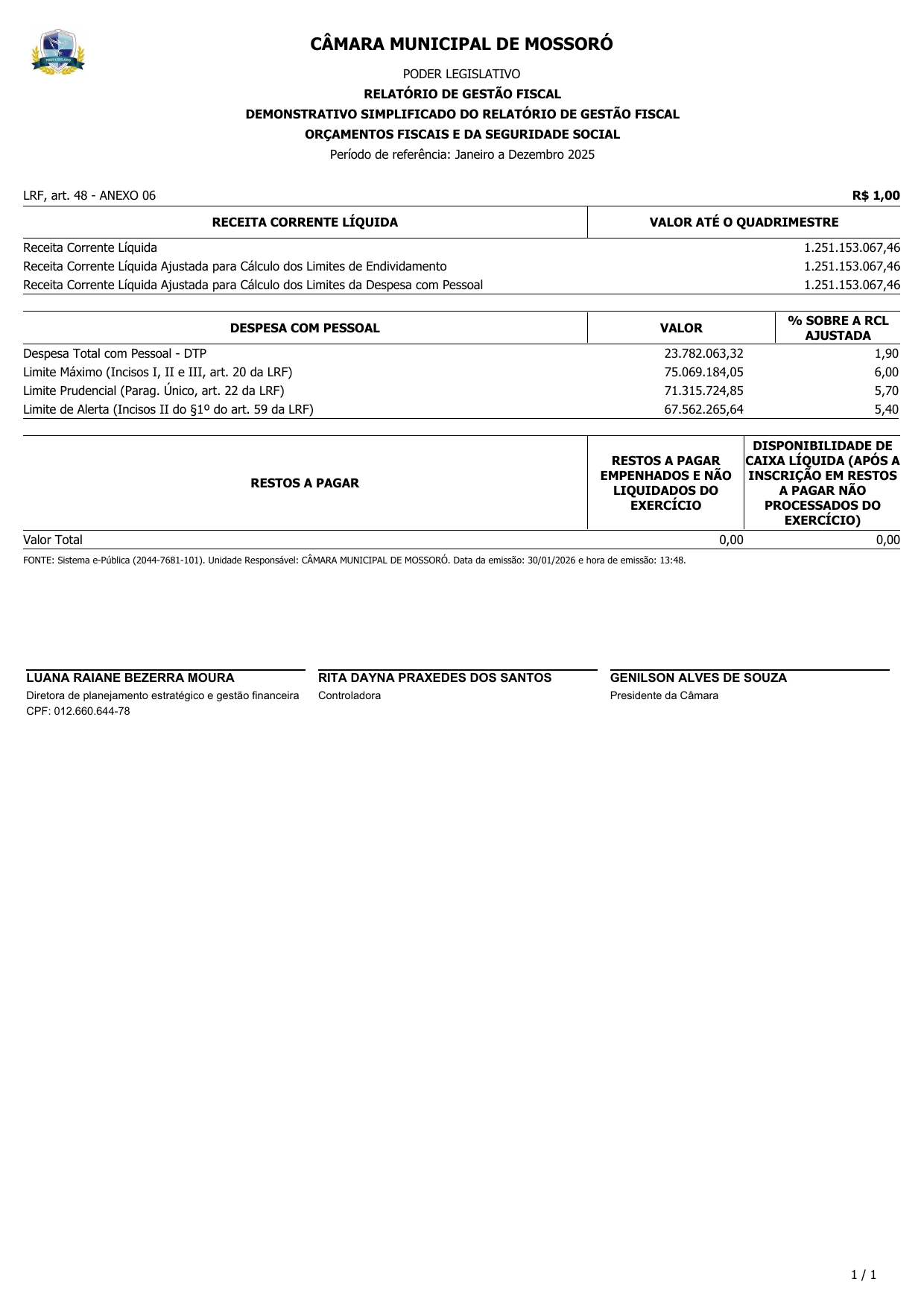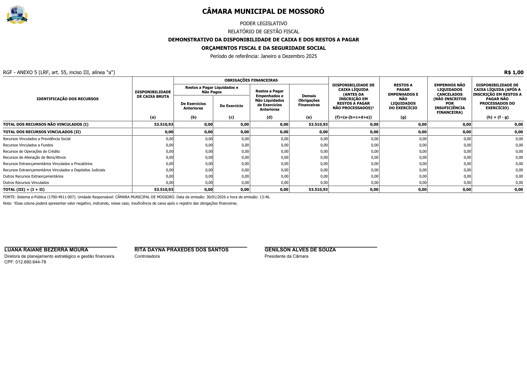 Mossoró-RN, 30 de janeiro de 2026