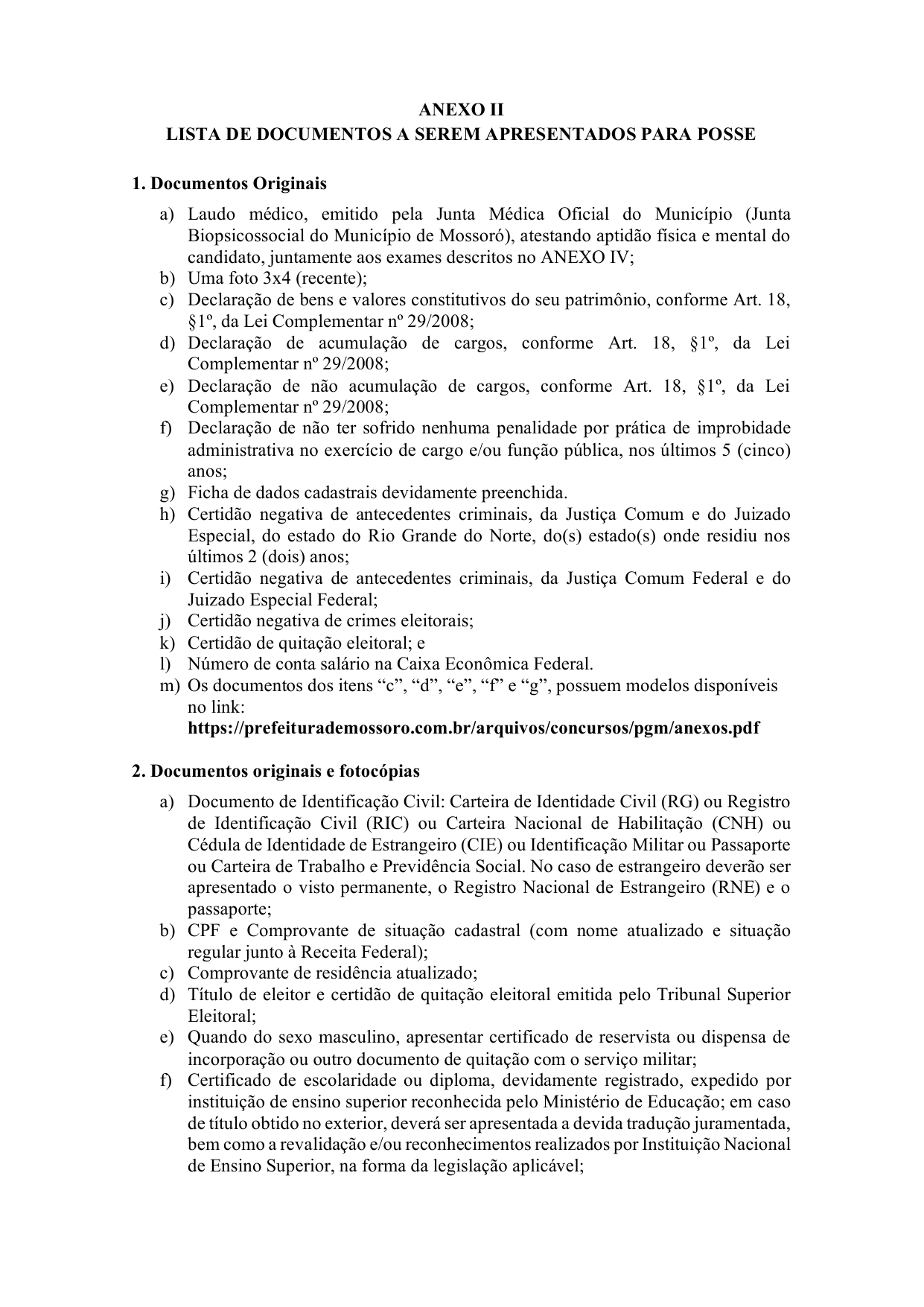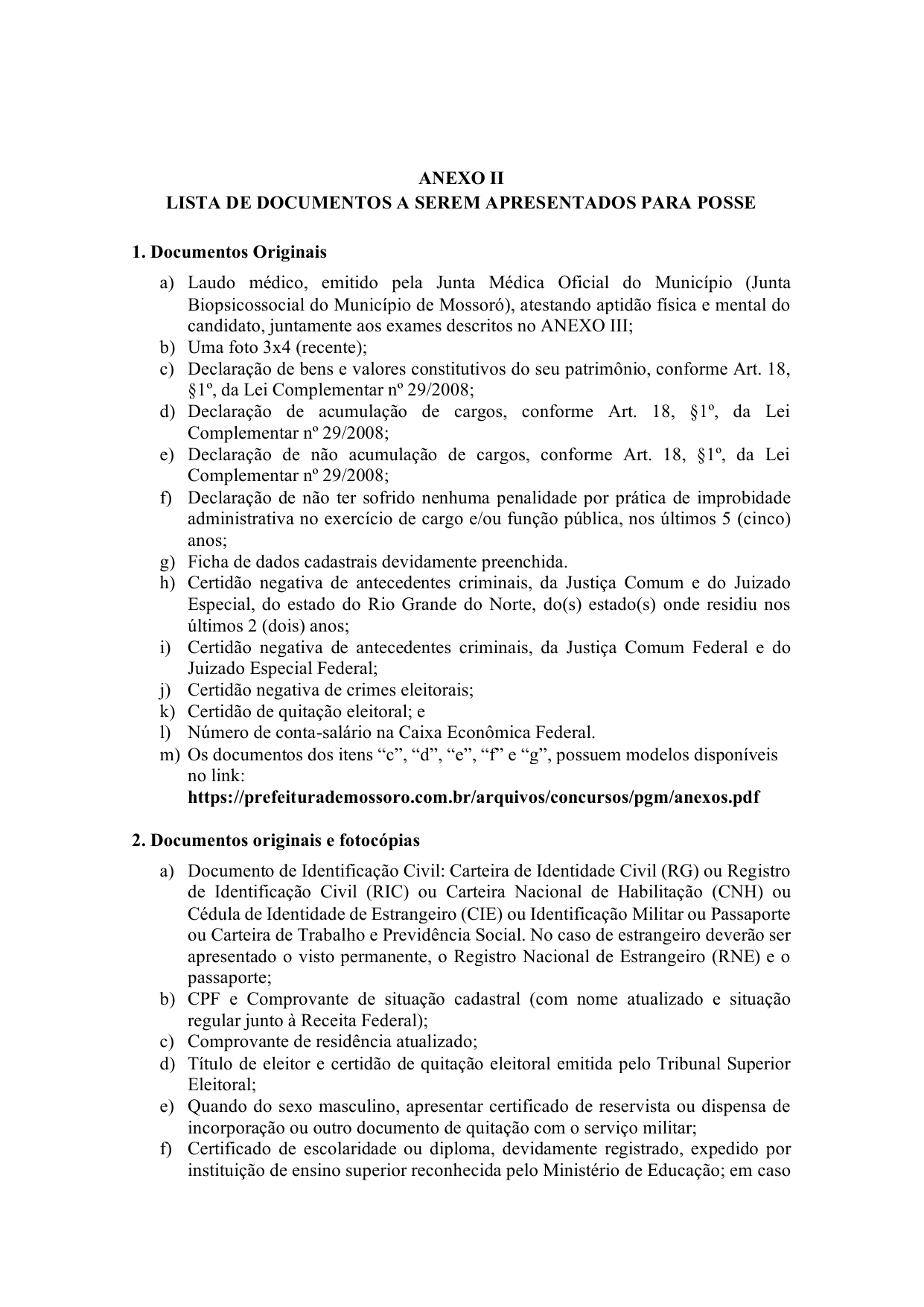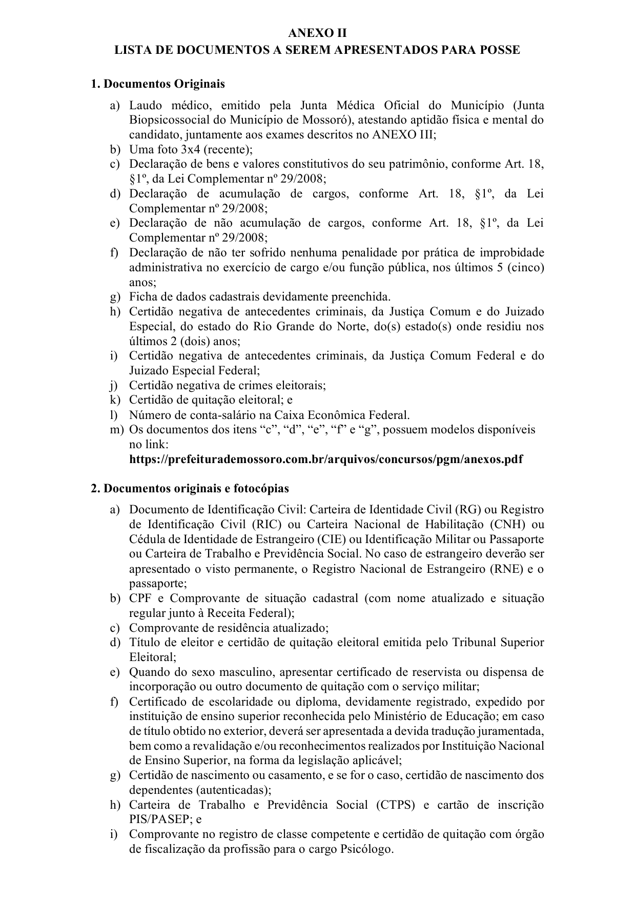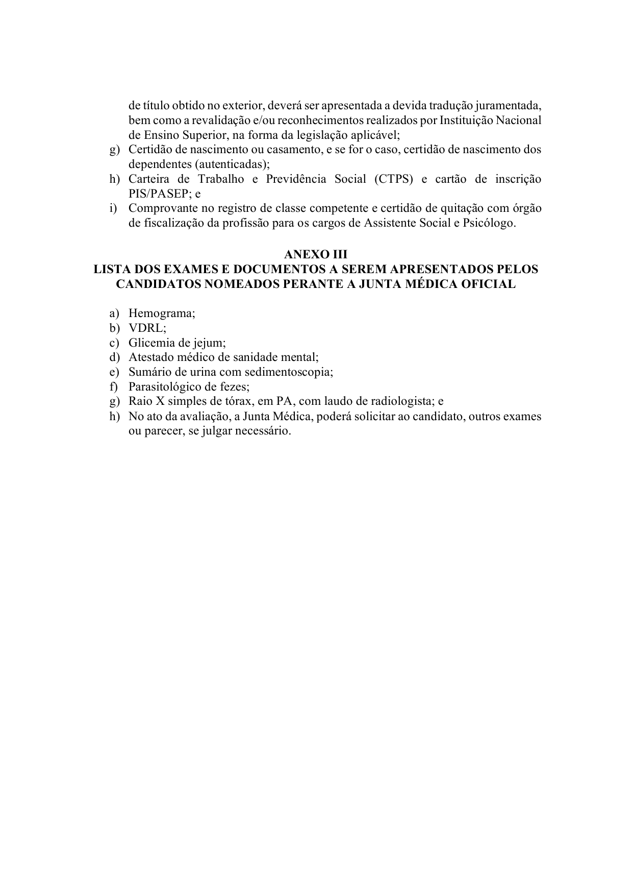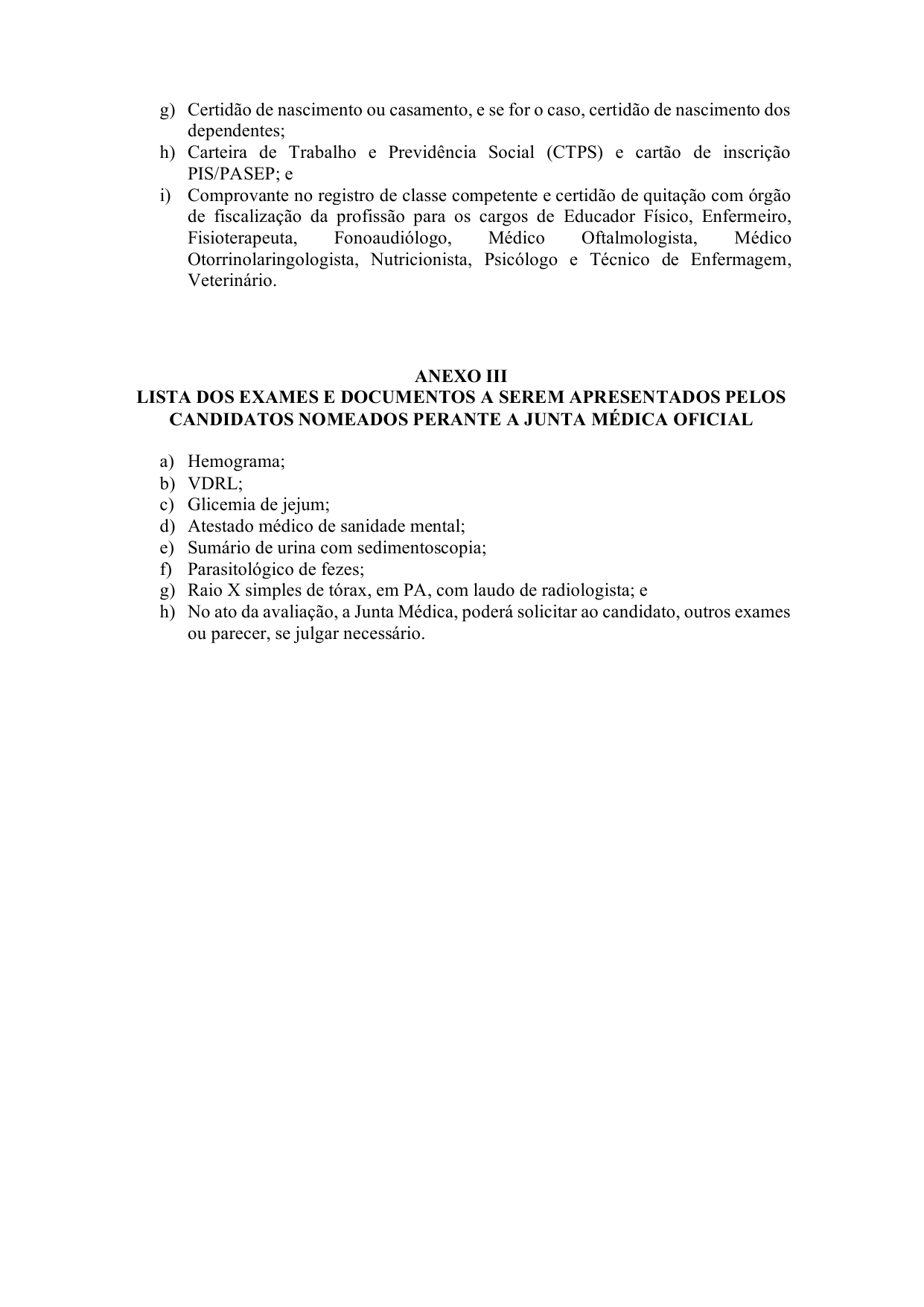 § 2º O laudo médico fornecido pela Junta Biopsicossocial do Município de Mossoró, atestando a aptidão física e mental do candidato, será expedido mediante a apresentação dos exames e documentos constantes do Edital do certame e do Anexo III desta Portaria, observadas as disposições dos arts. 1º a 3º da Portaria nº 4, de 18 de fevereiro de 2025 - Segepe.
