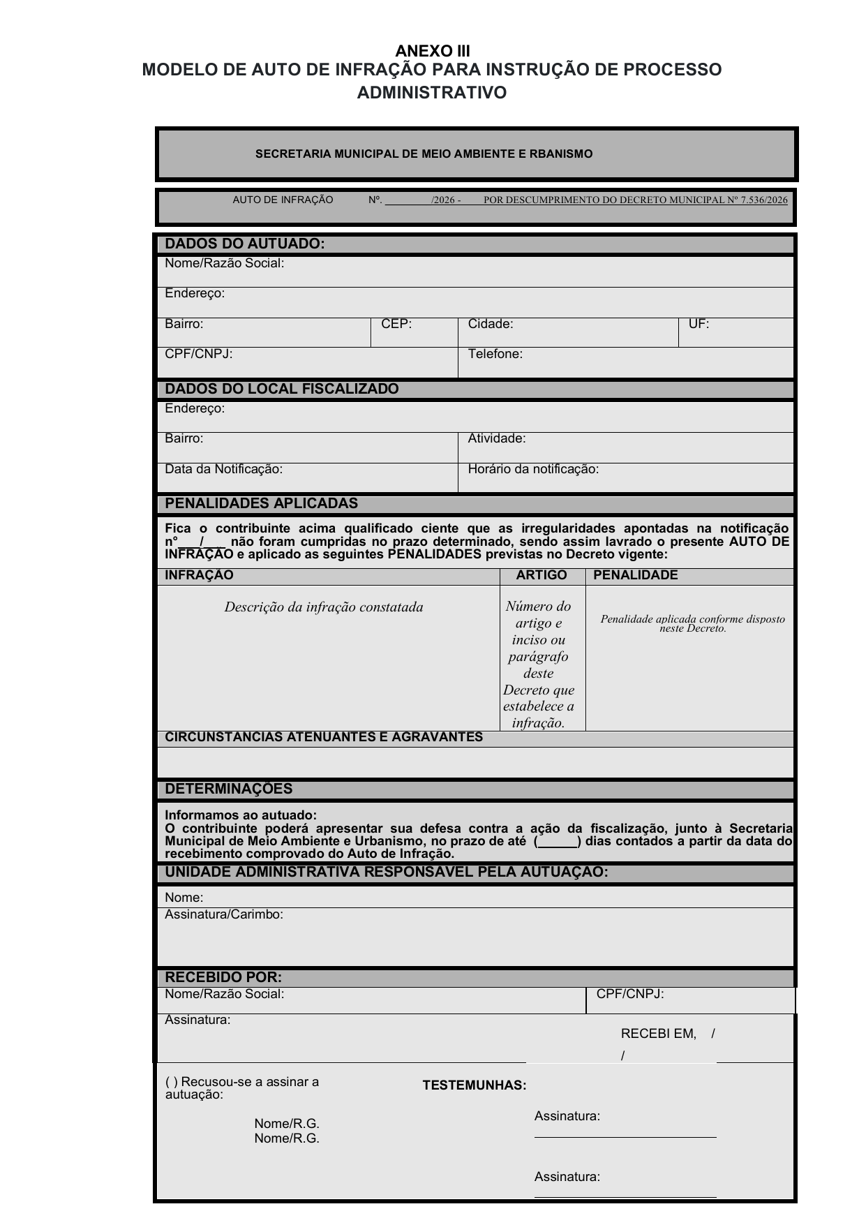 Art. 6º Caberá à Secretaria Municipal Meio Ambiente e Urbanismo (SEMURB) providenciar, no período compreendido entre 06 e 17 de abril de 2026, o cadastramento e credenciamento dos pretensos autorizatários e a devida emissão do documento de arrecadação dos valores previstos no art. 5º.