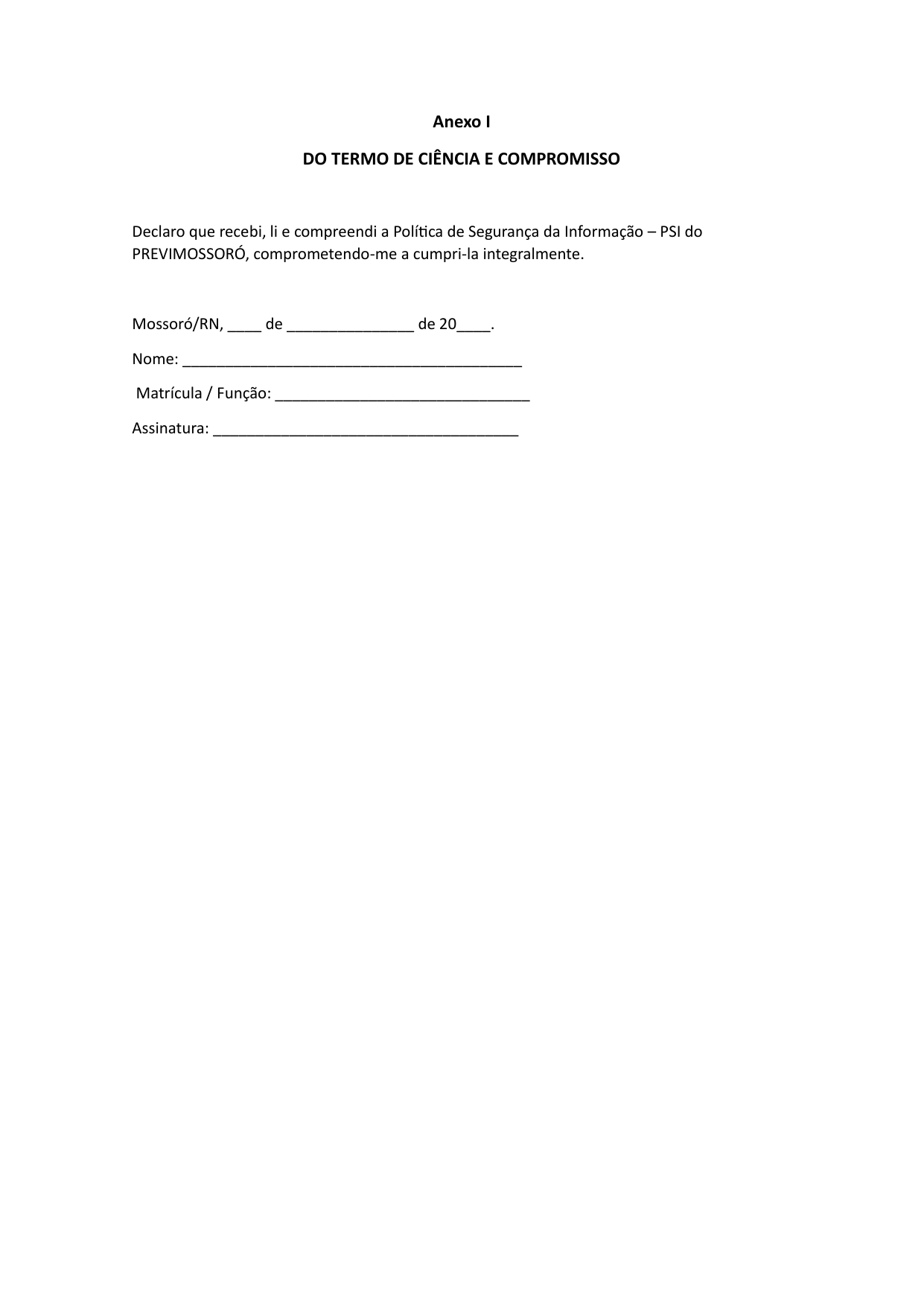 Art. 29. Todos os usuários deverão assinar Termo de Ciência e Compromisso, declarando conhecimento e concordância com esta Política. (Anexo I).