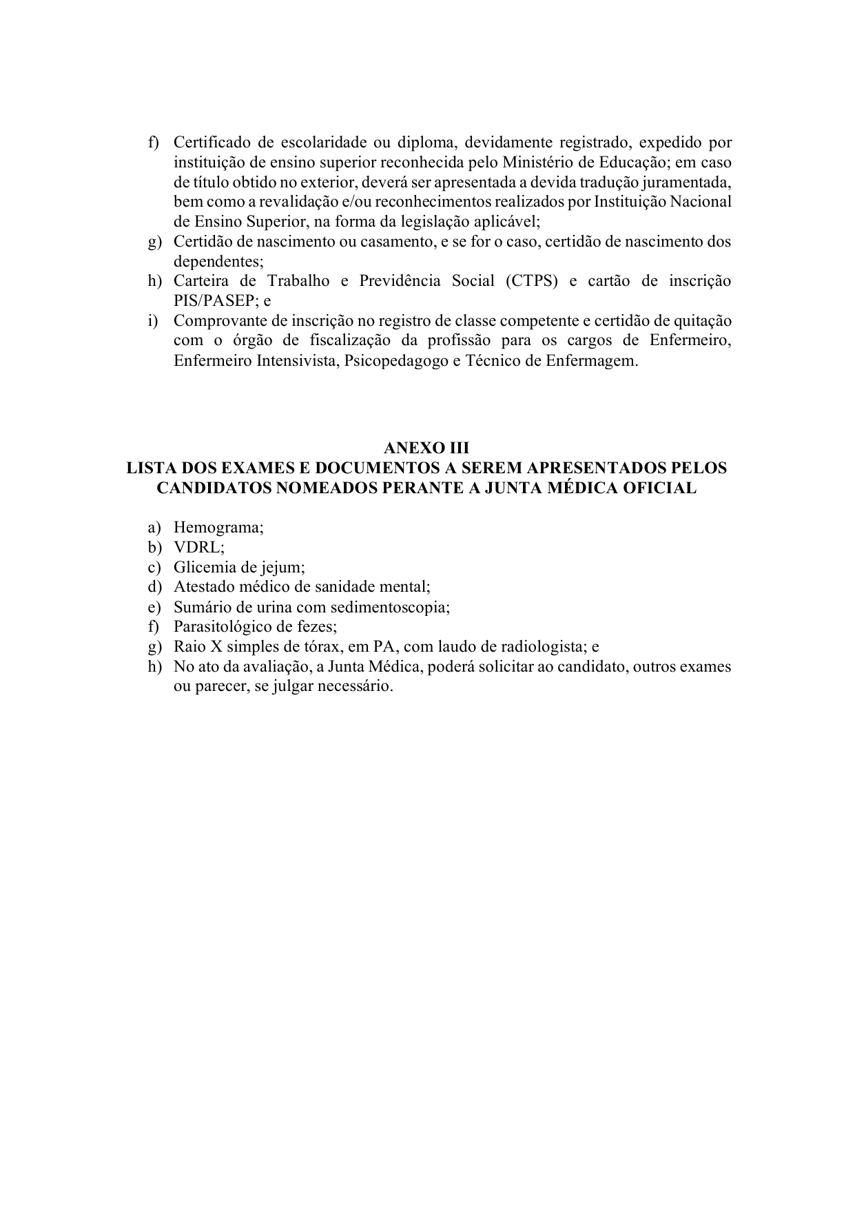 § 2º O laudo médico fornecido pela Junta Biopsicossocial do Município de Mossoró, atestando a aptidão física e mental do candidato, será expedido mediante a apresentação dos exames e documentos constantes do Edital do certame e do Anexo III desta Portaria, observadas as disposições dos arts. 1º a 3º da Portaria nº 4, de 18 de fevereiro de 2025 - Segepe.