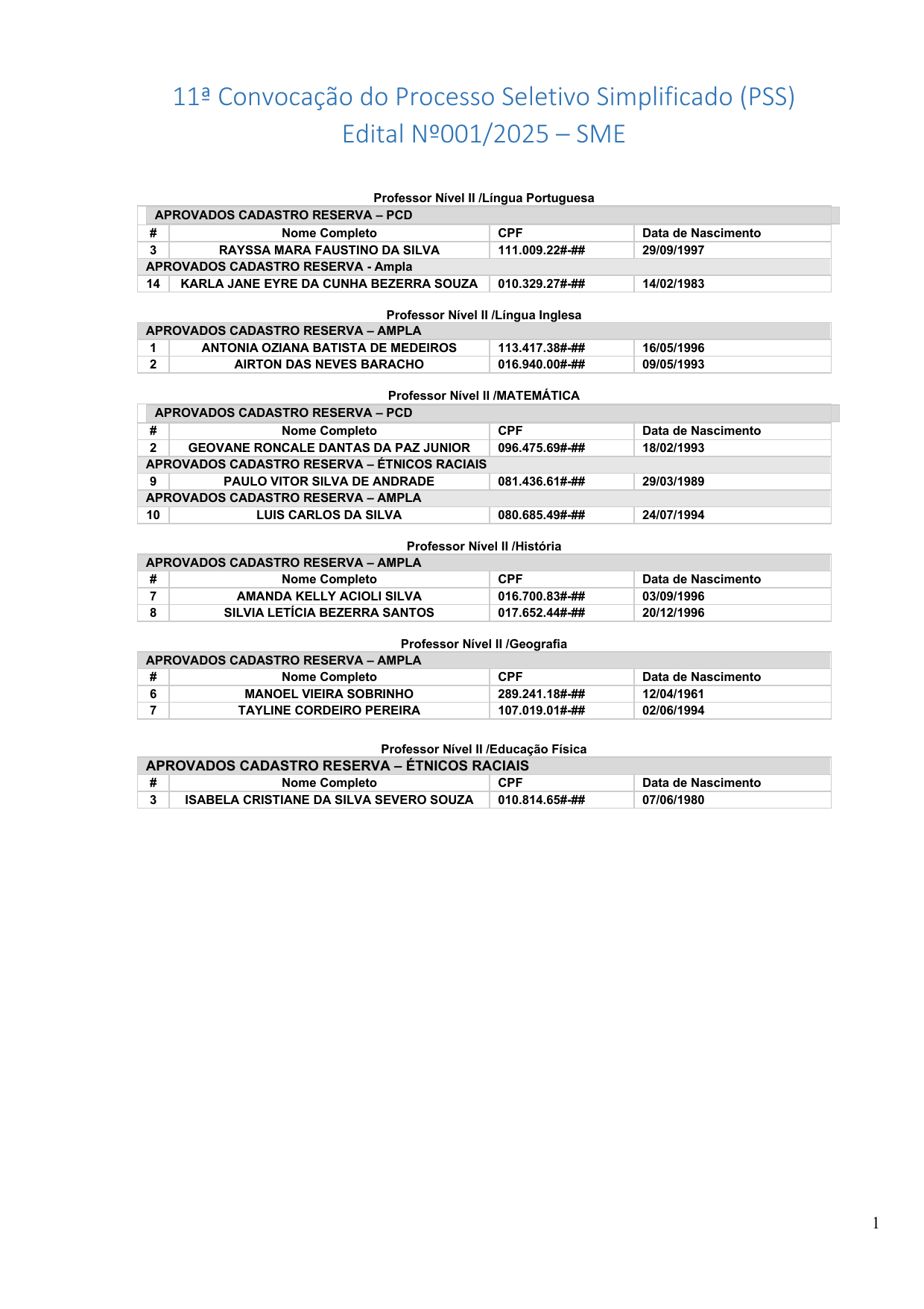 Art. 1º Fica convocado, observada a ordem de classificação, o candidato relacionado abaixo, aprovado no processo seletivo simplificado realizado com fundamento no Edital nº 01/2025 da Secretaria Municipal de Educação, para ocupar, por tempo determinado, os cargos de professores da Educação Infantil e Anos Iniciais do Ensino Fundamental (pedagogos), professores dos Anos Finais do Ensino Fundamental (6º ao 9º ano), para suprir as necessidades das Unidades Escolares da Rede Municipal de Ensino de Mossoró.